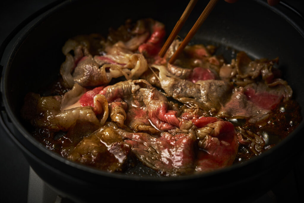将薄切牛肉与蔬菜等食材,用以酱油和砂糖为基底的甜咸调味汁“割り下”炖煮后享用。这是围坐锅边与家人朋友畅谈欢聚的暖心料理。